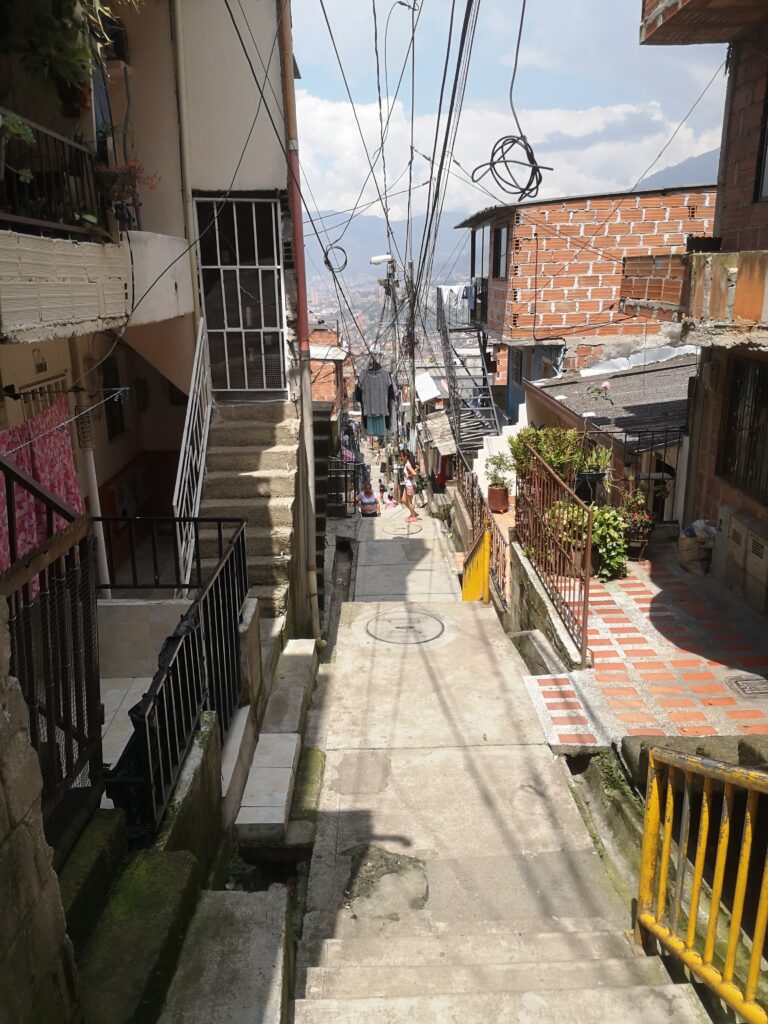 El barrio Loretto, llamado por sus habitantes ´´Pablo Escobar´´, se encuentra ubicado en la comuna 9, en una montaña de la ciudad de Medellín, Colombia. En sus inicios, fue financiado por el líder del denominado cartel de Medellín, Pablo Escobar y fue habitado por familias que vivían en extrema pobreza en el basurero municipal de Moravia.